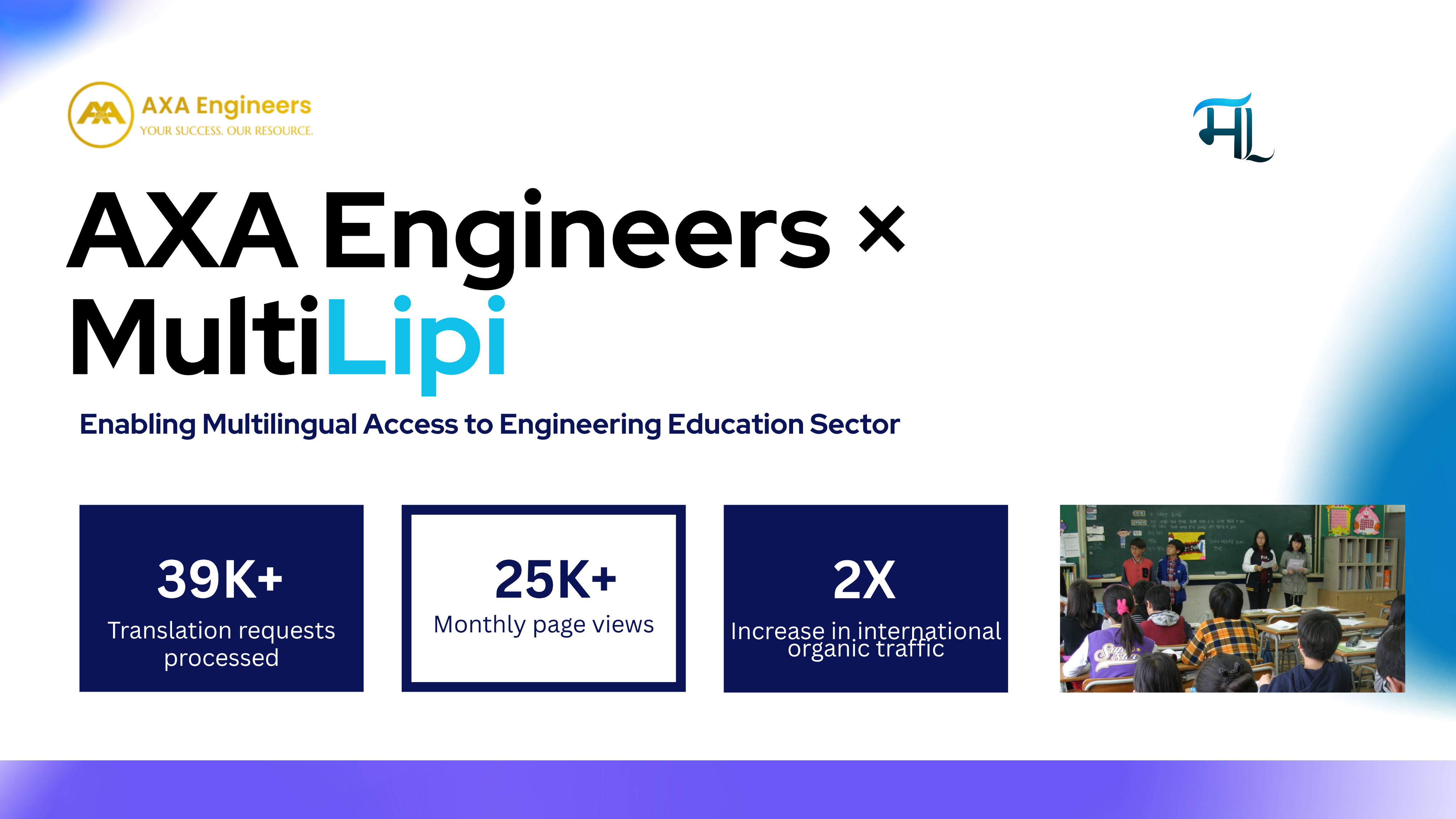 AXA इंजीनियर्स ने साबित कर दिया कि यदि आप सही बुनियादी ढाँचा बनाते हैं तो शिक्षा की कोई सीमा नहीं होती है। अपने पाठ्यक्रमों को केवल 8 भाषाओं में Google के लिए पठनीय बनाकर, उन्होंने अपने ट्रैफ़िक को दोगुना कर दिया और अंतर्राष्ट्रीय अनुप्रयोगों में 25% की वृद्धि की। उन्होंने केवल एक वेबसाइट का अनुवाद नहीं किया; उन्होंने अपने मिशन का निर्यात किया।